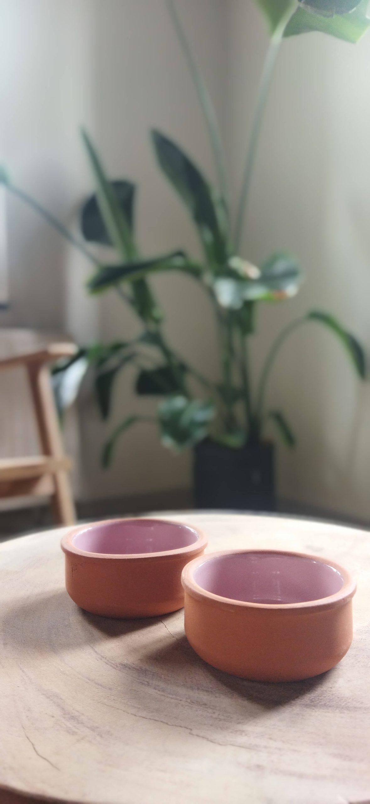 De schaaltjes zijn van terracotta met een geglazuurde binnenkant.